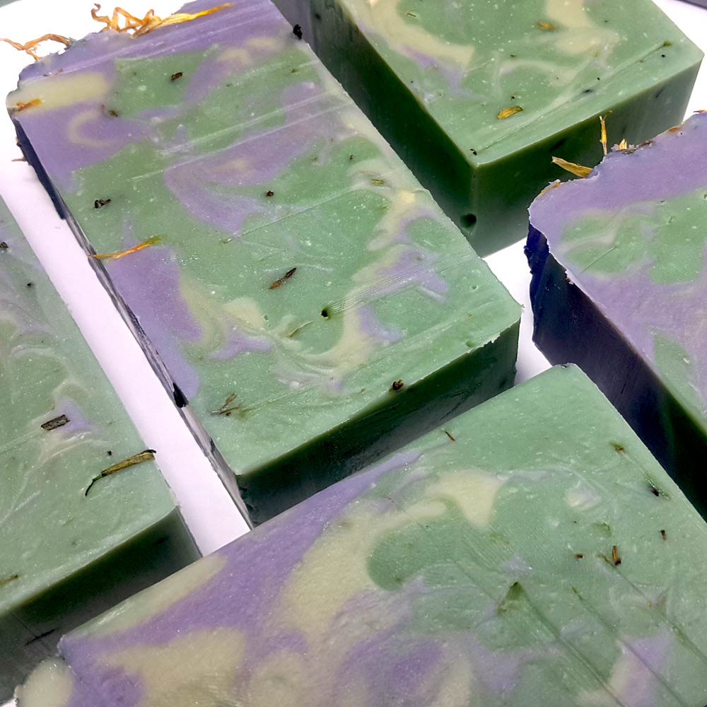 This soap is given a name The Green Giant, inspired by the colours of the incedible hulk. The soap was saponified with certified organic ingredients, palm free, paraben free, SLS free.